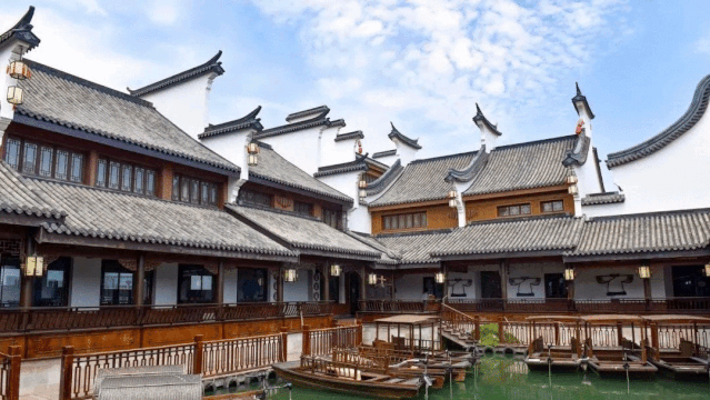 它有中国唯一的江南水乡酒店群,拥有六星级文华酒店、五星级嘉华酒店和环16.5万平米圆形人工湖的酒店群;