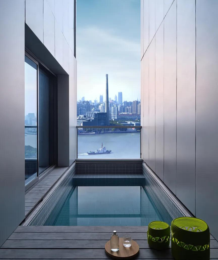 世博天悦效果图在中间套户型,可以看到三件套的奢华江景,而且还能拥有上海乃至全国独一份的空中泳池。