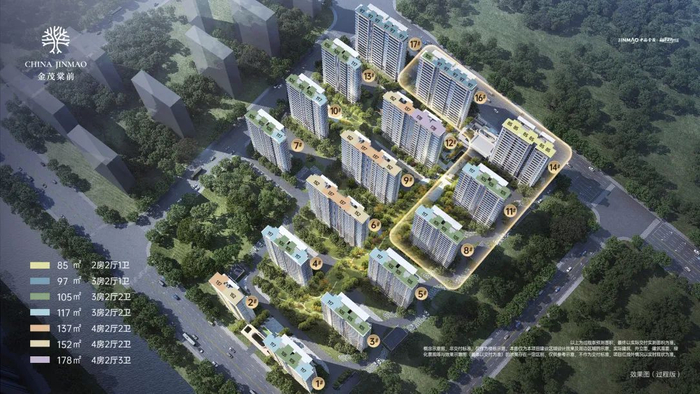 效果图(过程版,以最终落地为准)极具辨识度、现代感的立面审美,注定了金茂棠前划时代的产品定位。