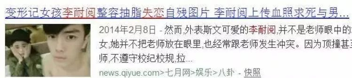 2014年,李耐阅干了一件轰轰烈烈的事情,失恋自残,在微博上传了鲜血淋淋的手臂照片,当时闹上了报纸。