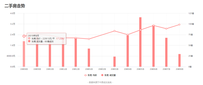 把时间拉长来看,东莞当前二手其实同去年8月相比,二手房的价格依然是大涨了的。