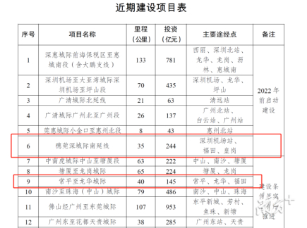 穗莞深城际南延线、塘厦至龙岗城际、常平至龙华城际要在2022年前动工建设。