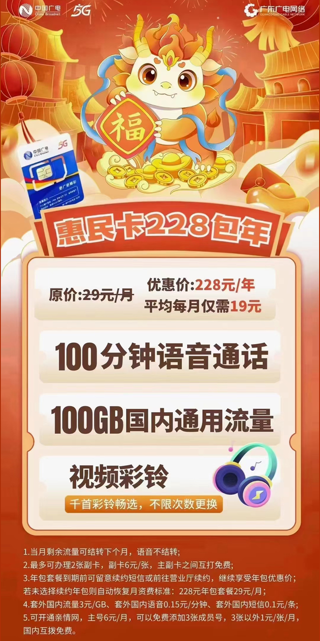一、惠民卡29元套餐228元/年