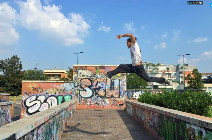 “跑酷运动没有门槛,四岁以上就可以开始训练。目前,我知道年纪最大的学员是一位60岁的跑酷阿姨,”张艺杰分享道。