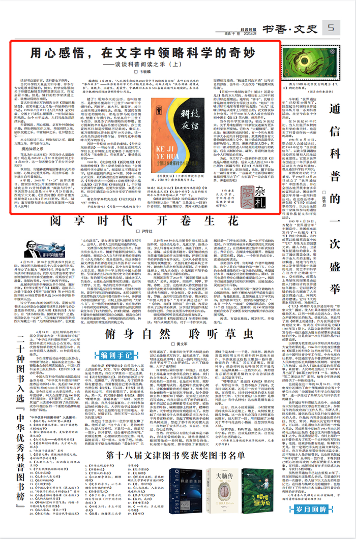 本文原载《科普时报》,原文标题为《用心感悟,在文字中领略科学的奇妙——谈谈科普阅读之乐(上)》。