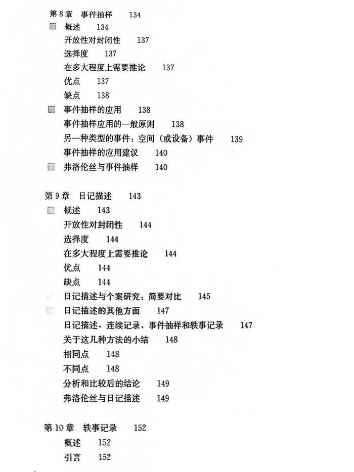 其中,本书着重介绍了九种观察记录方法——叙述性描述、时间抽样、事件抽样、日记描述、轶事记录、频次计数、持续时间记录、检核表和等级评定量表,以及每种方法的优缺点与适用范围。此外,本书还针对0~8岁不同年龄阶段儿童身体、认知、语言、情感等领域的发展提供了相应的观察练习指导,将理论与实践结合得恰到好处。