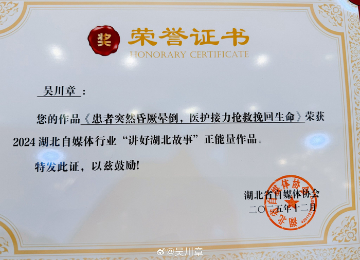 荣获湖北省自媒体行业“讲好湖北故事”正能量好作品奖!