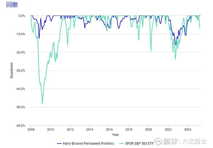 数据显示,自2008年1月至2025年3月,永久投资组合的长期年化收益率为6.2%,低于纯标普500ETF的10.13%,此数据未扣除通货膨胀。