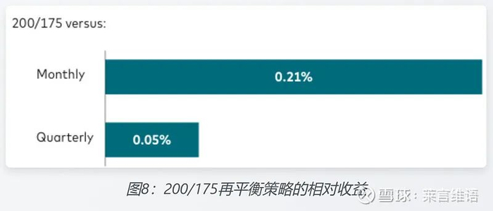 结果显示,相比于月度再平衡,200/175策略每年能带来大约0.21%的额外收益。而相比于季度再平衡,也能带来大约0.05%的额外收益。