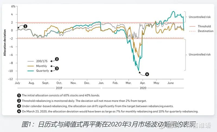 假设我们有个60/40的股票债券组合。如果用月度再平衡,那可能在3月份,市场还没怎么跌的时候,你还在按部就班地调整,结果等到月底,市场可能已经跌惨了,你的股票仓位可能远远偏离了60%的目标。