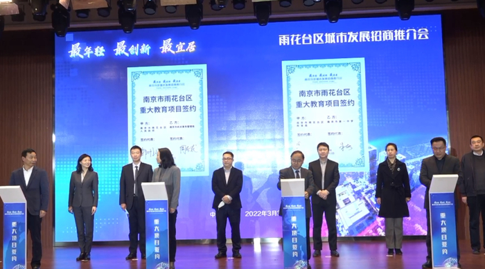 昨天,“最年轻、最创新、最宜居”雨花台区城市发展招商推介会,现场发布的各类学校、土地、医疗和商业数据。一中签约雨花,成立雨花教育集团。