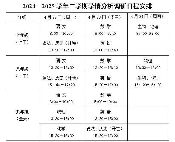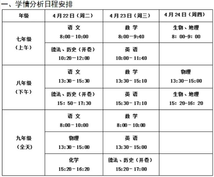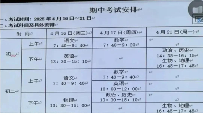 初一、初二期中考试:4月16日、17日