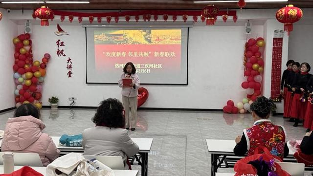 联欢会在三汊河社区党委梁学银书记热情洋溢、充满关怀的新春致辞中拉开帷幕,她向全体居民送上了最诚挚的节日问候与美好祝福,话语中饱含对过去一年居民为社区建设作出贡献的感谢,也满怀对未来的期待,祝愿每一位居民在新的一年万事如意,阖家安康幸福。