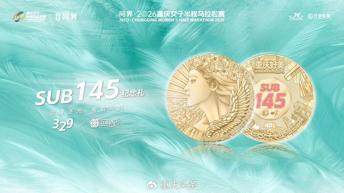 为向每一位以专业态度坚持训练的女性跑者致以敬意,2026重庆女马首次设立“Sub145专属纪念礼”——凡在比赛中净成绩跑进1小时45分(不含) 的选手,将获得一枚极具收藏价值的定制纪念礼遇。这一设定不仅是对高水平竞技表现的认可,更是对长期自律、科学备赛与不懈坚持的真诚回馈。