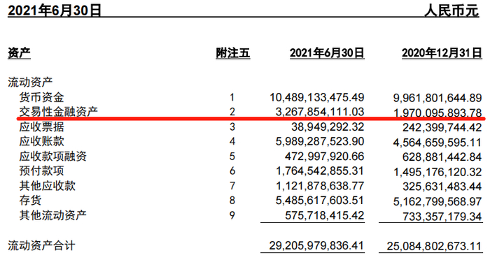 图3:复星医药2021H1合并资产负债表流动资产部分