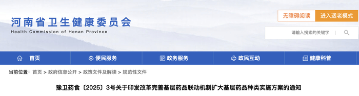近日,河南省卫健委发布《河南省改革完善基层药品联动机制 扩大基层药品种类实施方案》,明确4月30日前统一及调整用药目录。