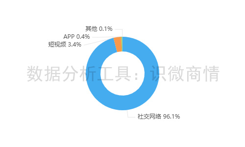 该时段内,有关“丝芭传媒鞠婧祎互诉事件”的舆情主要集中在社交网络平台,相关舆情量约占总量的96.1%,其次为短视频(约占3.4%),新闻APP(约占0.4%)。
