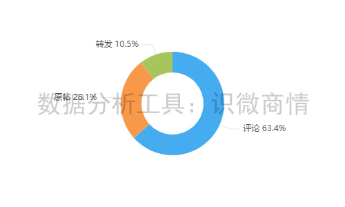 该段时间内,有关“盒马鸡蛋猕猴桃抽检成分超标事件”的舆情信息以评论为主,占63.4%;其次为原帖,占26.1%;转发较少,占10.5%。