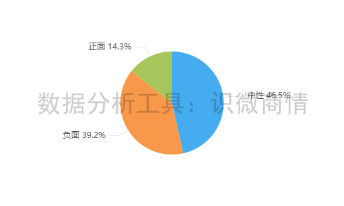 该时段内,有关“盒马鸡蛋猕猴桃抽检成分超标事件”的舆情情感倾向以中性为主,占46.5%;其次为负面舆情,占39.2%。正面舆情较少,占14.3%。