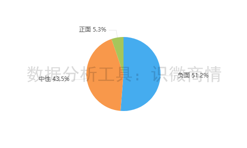 该时段内,有关“同仁堂南极磷虾油涉嫌造假事件”的舆情情感倾向以负面为主,占51.2%;其次为中性舆情,占43.5%。正面舆情较少,占5.3%。
