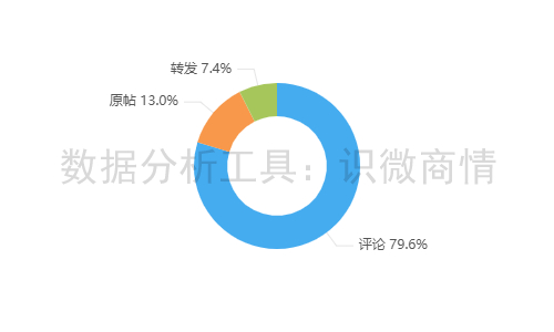 该段时间内,有关“同仁堂南极磷虾油涉嫌造假事件”的舆情信息以评论为主,占79.6%;其次为原帖,占13.0%;转发较少,占7.4%。
