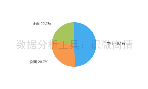 该时段内,有关“好利来面包掉地仍售卖事件”的舆情情感倾向以中性为主,占49.1%;其次为负面舆情,占28.7%。正面舆情较少,占22.2%。