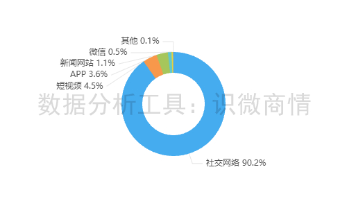 该时段内,有关“好利来面包掉地仍售卖事件”的舆情主要集中在社交网络平台,约占90.2%,其次为短视频(约占4.5%),新闻APP(约占3.6%)。