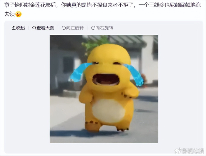 现在娱乐圈95后00后到处羡慕大奖哄抢不专业奖项,但对于三金影后章子怡来说,不管是专业大奖,还是没那么有说服力的奖项,吸引力都没那么大,可以说可有可无。但是一部作品,得不到专业大奖认可和青睐,却拿小奖,这样一对比,伤害性不强,侮辱性极大。