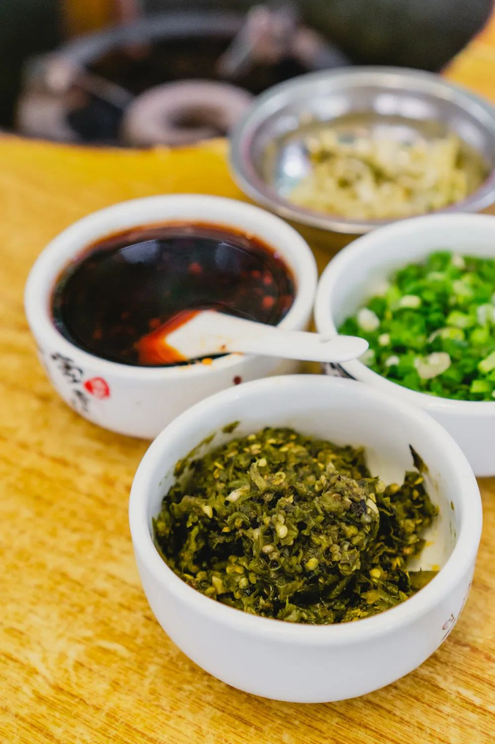 豆花细腻绵扎,多煮一阵更能吸收锅里各种食材带来的鲜味,即使不蘸佐料空口吃也相当不错。