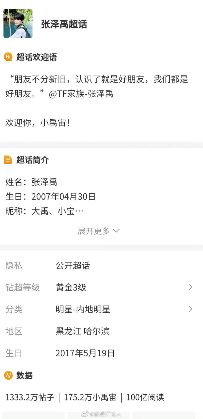 恭喜张泽禹超话阅读量破百亿!超话记录着张泽禹暴风吸粉的印记!相信厚积薄发的第一主唱张泽禹会站上更大的舞台!@TF家族-张泽禹