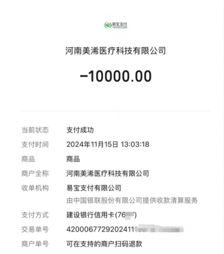 网友三投诉称,美浠医疗欺诈、诱骗消费,且术前未告知药品信息、未提供病例、价格不透明、未主动开具发票等问题。2024年11月25日,被对面美体减肥店老板约体验抗衰仪器,26日到店后被套路购买3280元基础卡。28日到医院,又被诱导参加两人同行减半活动,扫码付款3万元。整个过程疑点重重,事后上网查询才意识到被骗。要求全额退款并提供药品信息。
