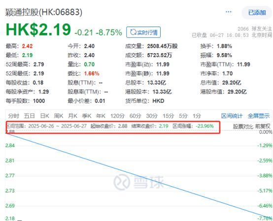 从表面看,颖通控股的暴跌似乎有些“无厘头”。
