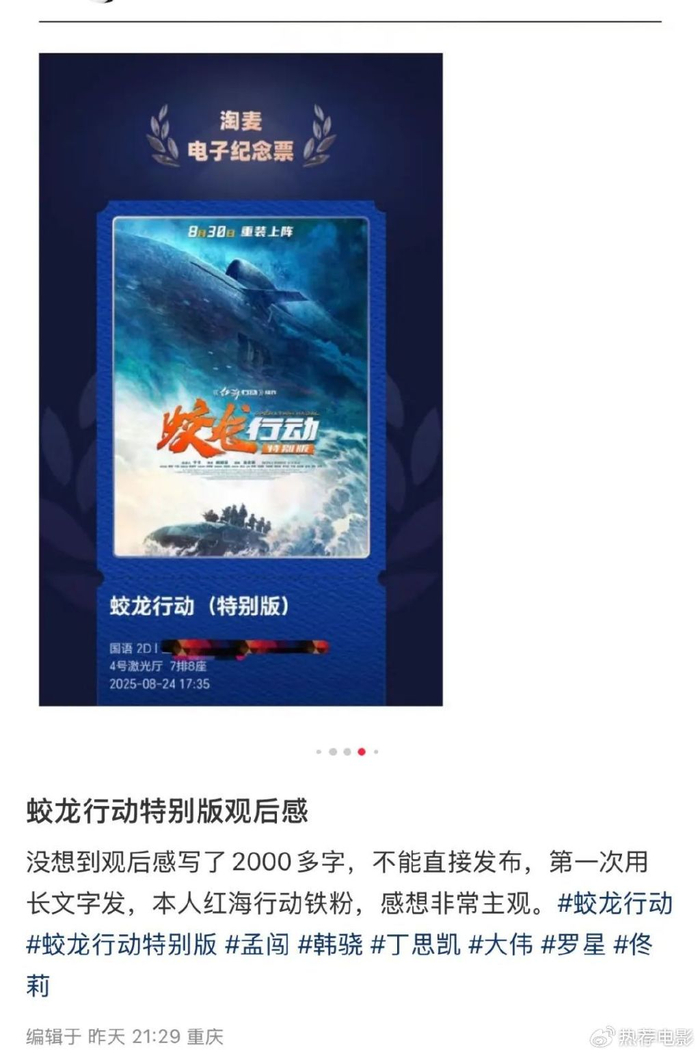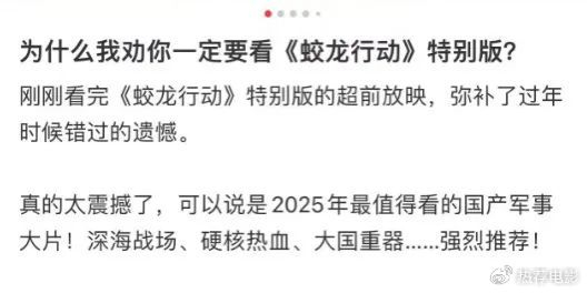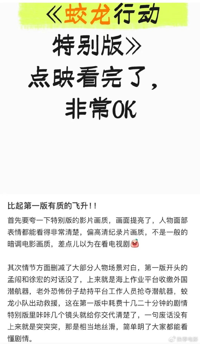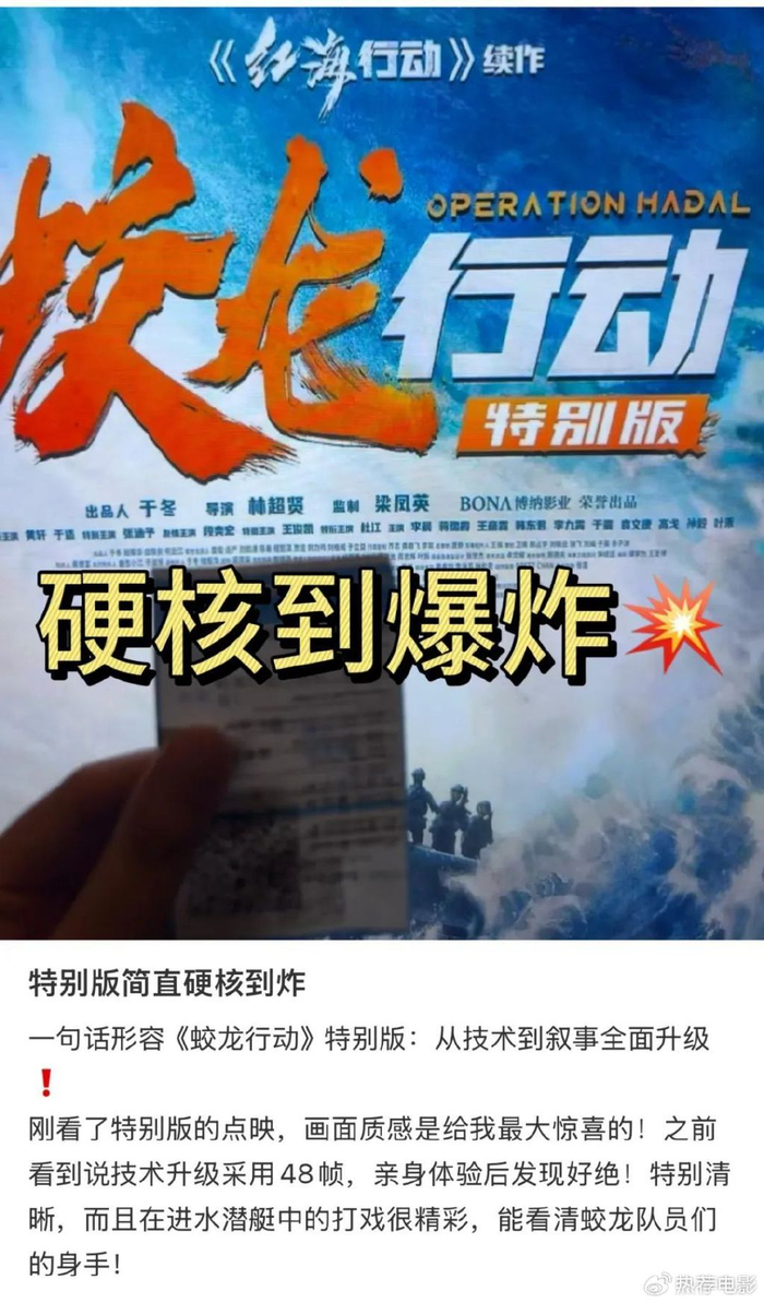 刚刚过去的周末,《蛟龙行动(特别版)》的点映场刚结束,朋友圈就被各种好评刷屏了。说实话,春节档那会儿这片子因为排片问题没看成,心里一直挺遗憾的。这次听说重制了特别版,赶紧买票去看了场点映。