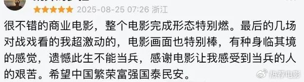 影片8月30日就正式上映了,但8月29日还会有一场点映,等不及的朋友可以提前一天走进影院感受,相信这部特别版一定会给你带来惊喜。毕竟,能让挑剔的军迷都改口说“该夸就夸”的电影,绝对不会让人失望!