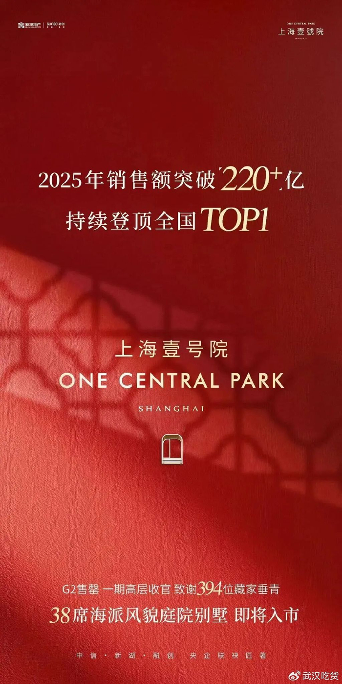 从建筑立面的现代美学,到园林景观的艺境融合,再到精装细节的毫米级把控,武汉壹号院以“第一”定义“第一”,用产品说话,用品质赢得市场。武汉壹号院面世3个月,销售额突破117亿,创造了单盘销售武汉第一、全国第三的历史记录。