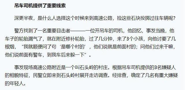 于是,黑暗中三个人不停捡起地上的石块,向高速路上行驶的汽车砸去。