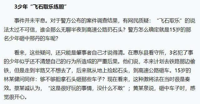 根据警方的调查,砸中邢丹乘坐汽车的,是三人中15岁的林良健。