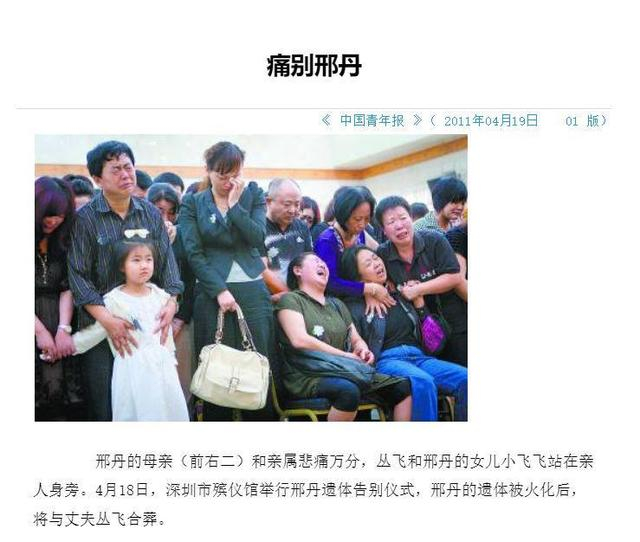 2011年4月19日,邢丹的遗体火化,随后和丛飞合葬一处。