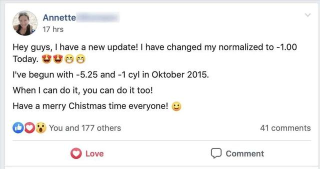 并且大约6个月后,他完全摘掉了眼镜,即便是开车的时候,也不需要眼镜了!