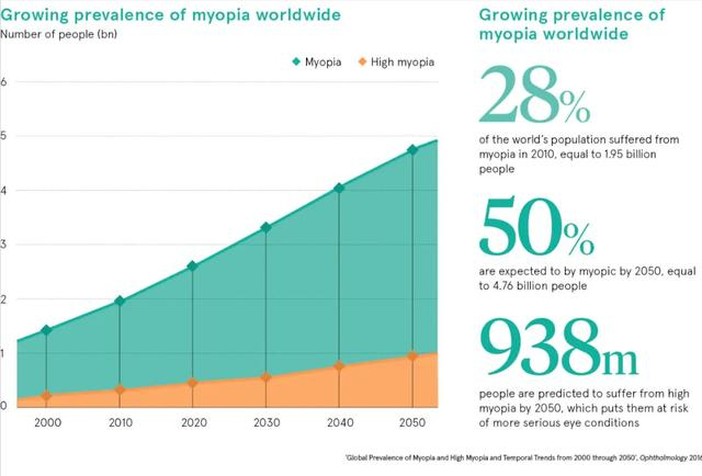 2016年,据发表在《眼科学》杂志上的一项研究估计,到2050年,世界上将有一半的人口近视。