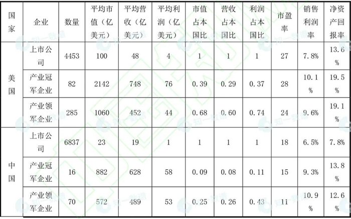 说明从规模以上企业到代表优质企业的上市公司、再到上市公司中的头部企业,中国与美国的差距较大。