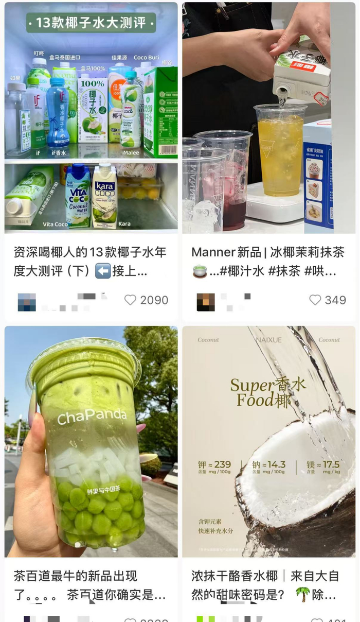 一位茶饮品牌店长表示,椰子水自带热带风情,用它开发新品很方便——不用大动干戈改配方或加成本,还能给顾客带来应季的感觉。