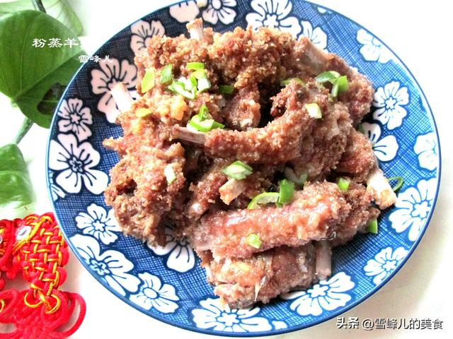 【粉蒸羊排】食材:羊排,米粉,白糖少许,五香粉,生抽少许,盐少许。