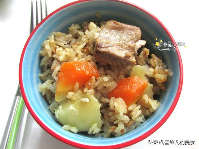 【羊排胡萝卜蒸饭】食材:大米,洋葱,胡萝卜,土豆,孜然,羊肉,盐,酱油,花生油。