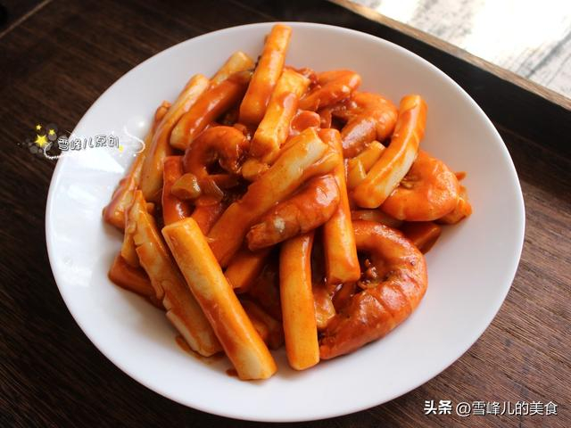 【鲜虾炒年糕】食材:年糕,鲜虾,葱丝,姜丝,生抽少许,蚝油少许,盐少许,花生油。
