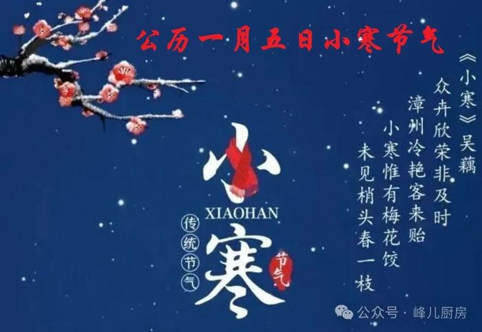 转眼间就将迎来二十四节气中的小寒节气,小寒是农历的二十四节气中第二十三个节气,冬季的第五个节气,小寒意味着天气寒冷,但没有冷到极点,小寒之后一年之中最冷的日子就要来了。小寒节气不仅要添衣保暖,适当加强体育锻炼,饮食方面也要格外注意。各地在小寒节气有着丰富多彩的风俗习惯。公历一月五日小寒节气,别忘“吃二样,做一事,忌一事”习俗,滋养气血度寒冬!