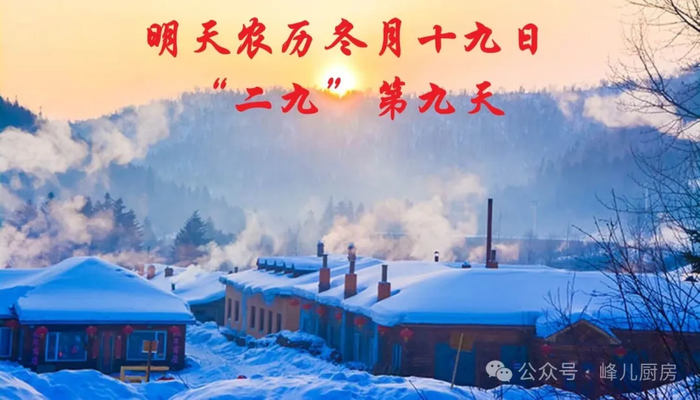 明天是农历冬月十九日,也是“二九”第九天,“二九”是数九寒天的第二个阶段,对应冬至后的第十天至第十八天,此时寒威渐盛,万物蛰伏。作为“二九”寒天的收尾之日,民间流传着诸多贴合时令规律与生活智慧的习俗,核心围绕“御寒养生”、“辞旧蓄福”展开,既承载着对寒冬安康的期许,也为后续节气过渡做好铺垫。明天“二九”最后一天,别忘“吃二样,做一事”习俗,幸福安康送二九!