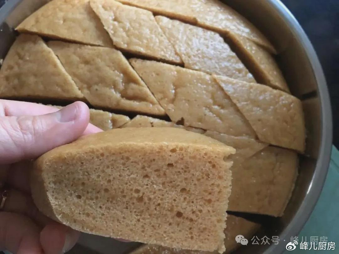 做法:1、先称重,热开水和红糖白糖搅拌,融化,晾凉一些。2、晾凉后筛入粉类(除泡打粉外)混合搅拌,不嫌麻烦的可以过筛一遍。3、搅拌均匀后的状态,顺滑,无干粉,无疙瘩。4、放温暖的地方密封发酵约1个小时,用烤箱发酵功能37度,发酵50分钟,烤箱底层放一盘热水。5、发酵好后冒气泡,排气搅拌时会看到内部很多泡泡和发酵丝状,这是比较稀的面糊,不会像发面那么膨胀。6、小碗里称好泡打粉,把少量面糊倒小碗搅拌均匀再倒回大盆里搅拌。加入玉米油/椰子油搅拌,搅拌好倒入大盘里震出气泡。蒸之前一定要搅拌至没有气泡,搅拌好之后,高处倒入盘子,在入锅前用竹签或者牙签在面糊表面划几次,然后振动几下,蒸出来会减少大气孔,细腻一些。7、无需二次发酵,不要停留,直接开水蒸,中大火26分钟,焖5分钟,再开盖。出锅后,晾凉脱模,切开食用。用面包刀切开散热,也可以凉了再切。8、切面非常细腻的气孔,很小的孔,不会像发糕那么大的孔,底部没有沉淀,因为熟透了。