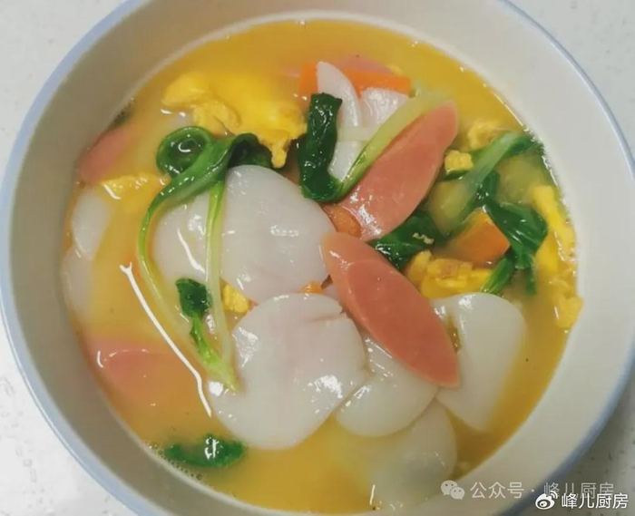 做法:1、将所有食材全部弄好,油热放入打散的蛋,煎好盛出备用。2、锅中留底油,放红萝卜进去稍微煎炒一下,再把年糕和火腿肠也放进翻炒一下后加入开水。3、然后把煎好的蛋放进去,加上适量的盐,和生抽或蚝油,也可以放一点点的胡椒粉,煮它个1分钟样子煮出蛋味来,快铲的时候把青菜放下去,青菜转青断生后就可以盛出装碗了。4、烧法也简单,家有什么菜就放什么进去,也没有那多复杂的调料,就随便烧。
