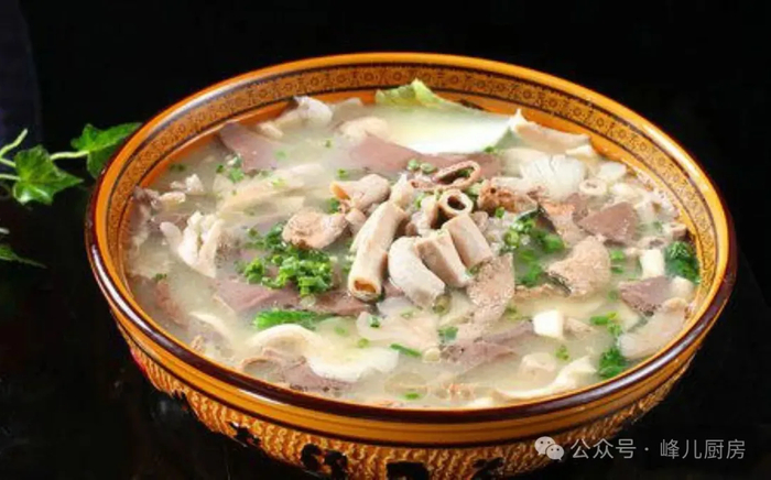 做法:1、用放了少许盐的温水接血,静置 15 分钟凝固,切块后冷水下锅加料酒焯水,捞出备用;猪肝切薄片,淡盐水浸泡 10 分钟去血污,冲洗后沥干,可加少许淀粉抓匀;粉肠用面粉 + 醋 / 小苏打反复揉搓,翻洗至水清无异味,切段焯水 30 秒;五花肉切片,肥瘦分开。2、煸香打底,铁锅烧热,放猪油 + 少量菜籽油,下肥肉片中火煸炒至出油、边缘微焦,捞出;留底油,爆香姜片、大蒜、花椒、干辣椒,加入酸萝卜丝 / 酸菜丝大火炒 2 分钟出酸辣味。3、熬制汤底,淋入 1 勺米酒去腥,加足量开水(没过食材 3cm),放入煸过的五花肉和粉肠,大火烧开后转小火炖 10 分钟。4、分层下料,先下豆腐、粉条、白萝卜煮 5 分钟;转大火,放瘦肉片煮 1 分钟,再下猪肝煮至变色,约 30-60 秒,绝不能久煮;最后轻轻放入猪血块,避免搅碎。5、调味出锅,加盐、白胡椒粉调味;起锅前撒蒜苗段 / 葱段,大火滚 30 秒,关火后可再淋一勺新鲜猪油增香。